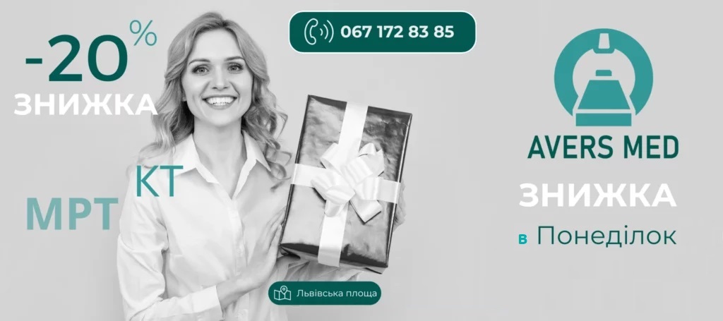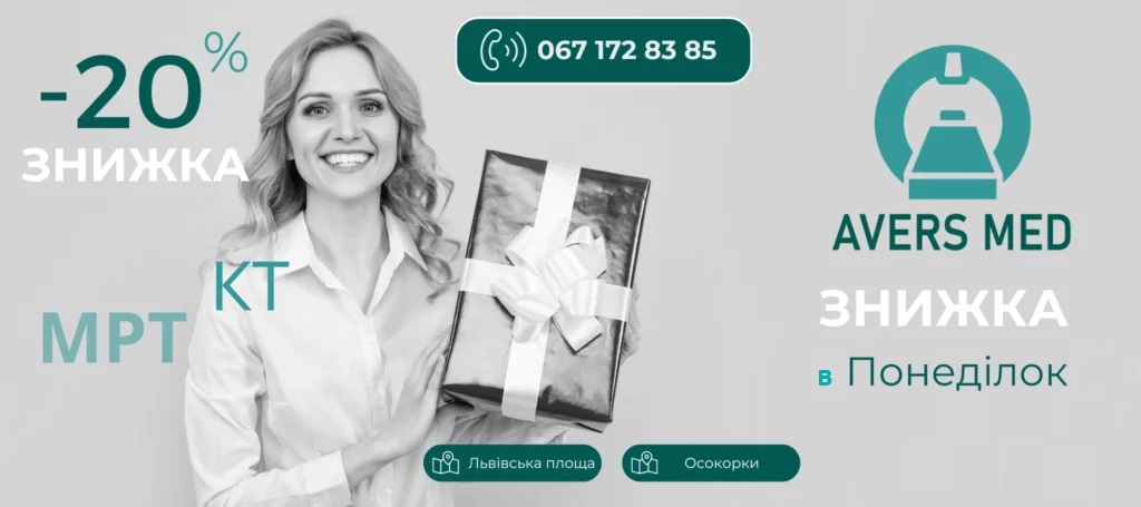 Ми завжди прагнемо дарувати нашим пацієнтам найкраще, тому регулярно пропонуємо акційні пропозиції та знижки. Слідкуйте за новинами на сайті клініки “АверсМед”, щоб завжди бути в курсі наших спеціальних пропозицій. Знижка на МРТ та КТ є корисним інструментом для тих хто займається профілактичним оглядом.